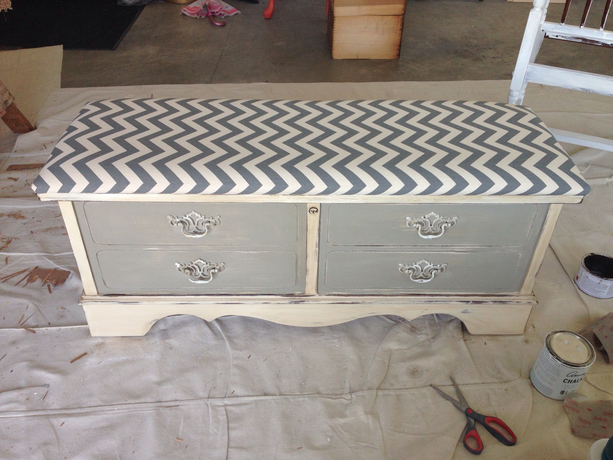 I found this awesome settee on craigslist and couldn’t wait to get my hands on it. I have to say it wasn’t much to look at when I saw it. I knew with some Annie Sloan chalk paint, she could beautiful once again.