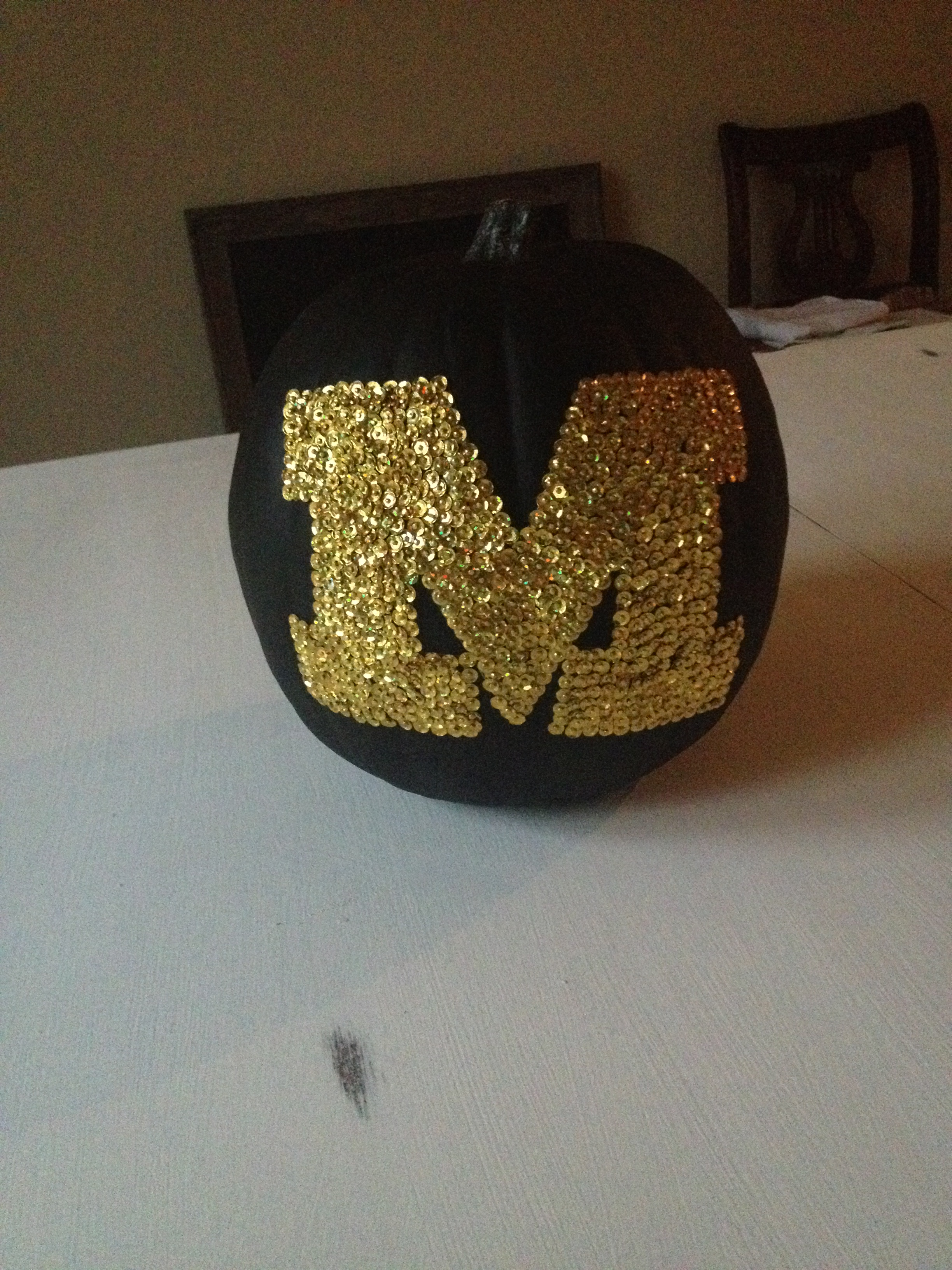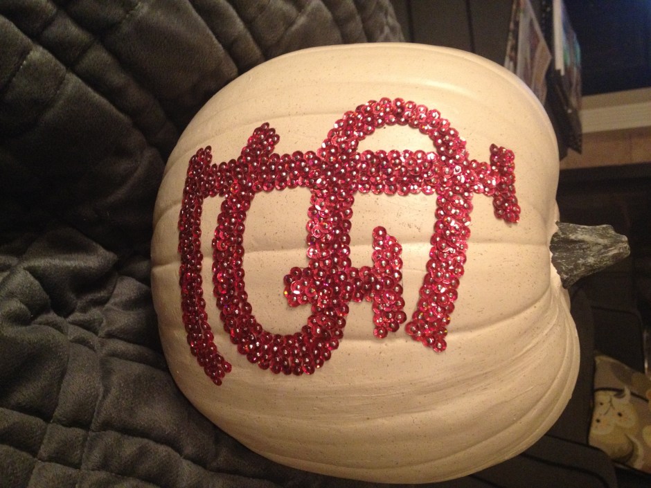 This year I’ve been inspired to go glitzy and pin sequins to craft pumpkins. I’ll still have them next year! Woohoo!