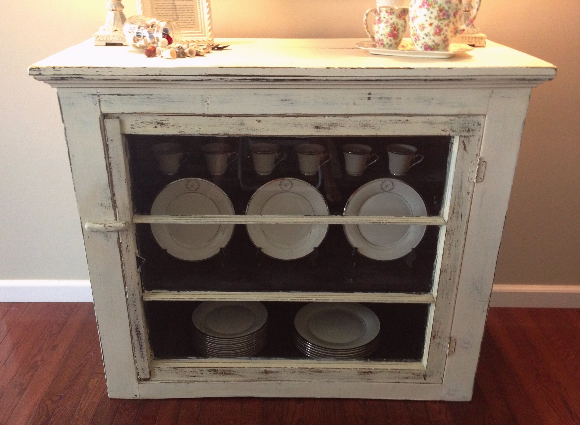 My dear friend Deana has been looking tirelessly for a buffet to go in her breakfast room. She found this gem on craigslist finally and sent me an inspiration picture of what she wanted it to look like. She was looking for a white or off white color to accent her grey walls. She didn’t want anything too ornate or fancy. This buffet was perfect but needed a little face lift.