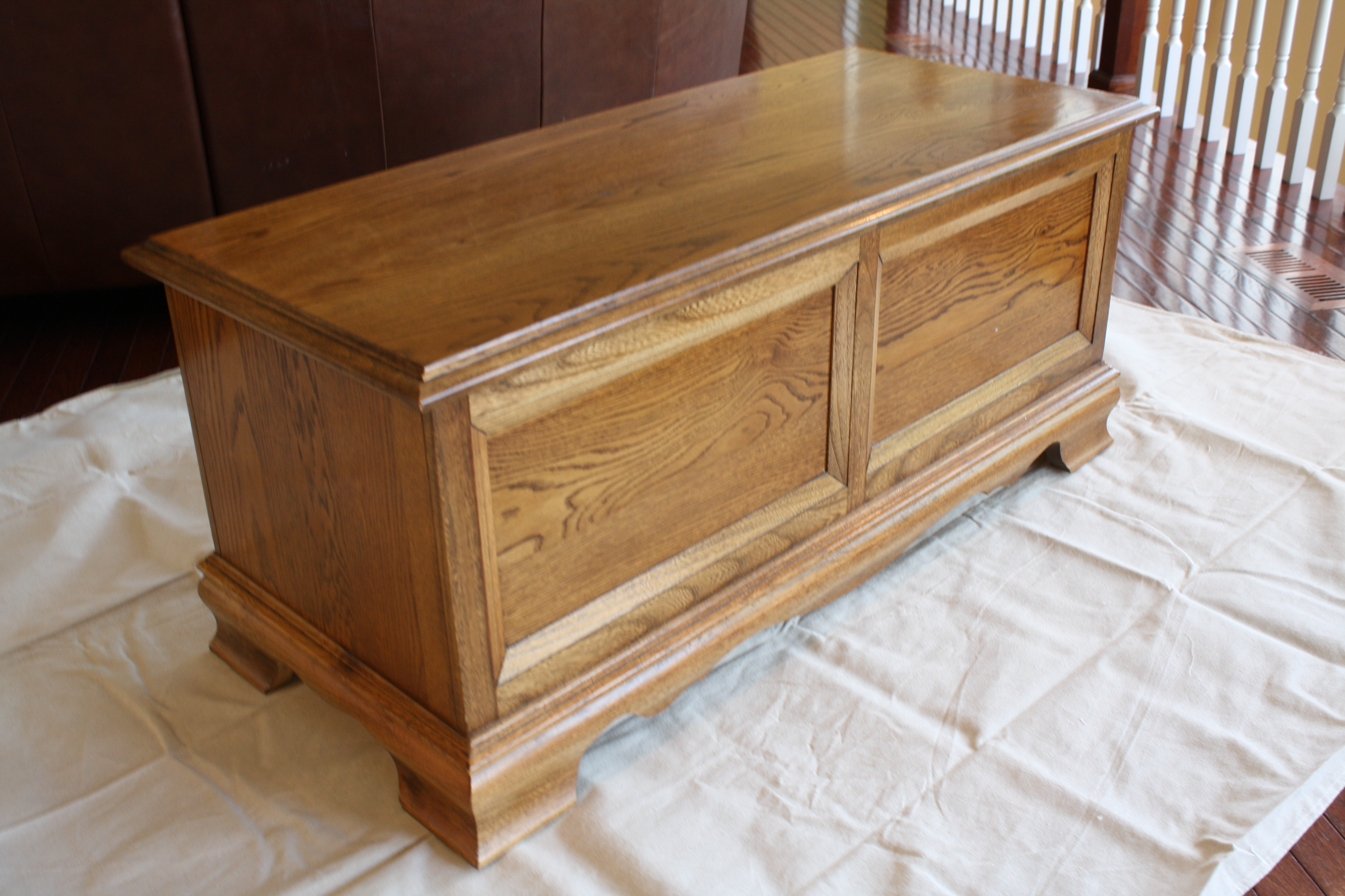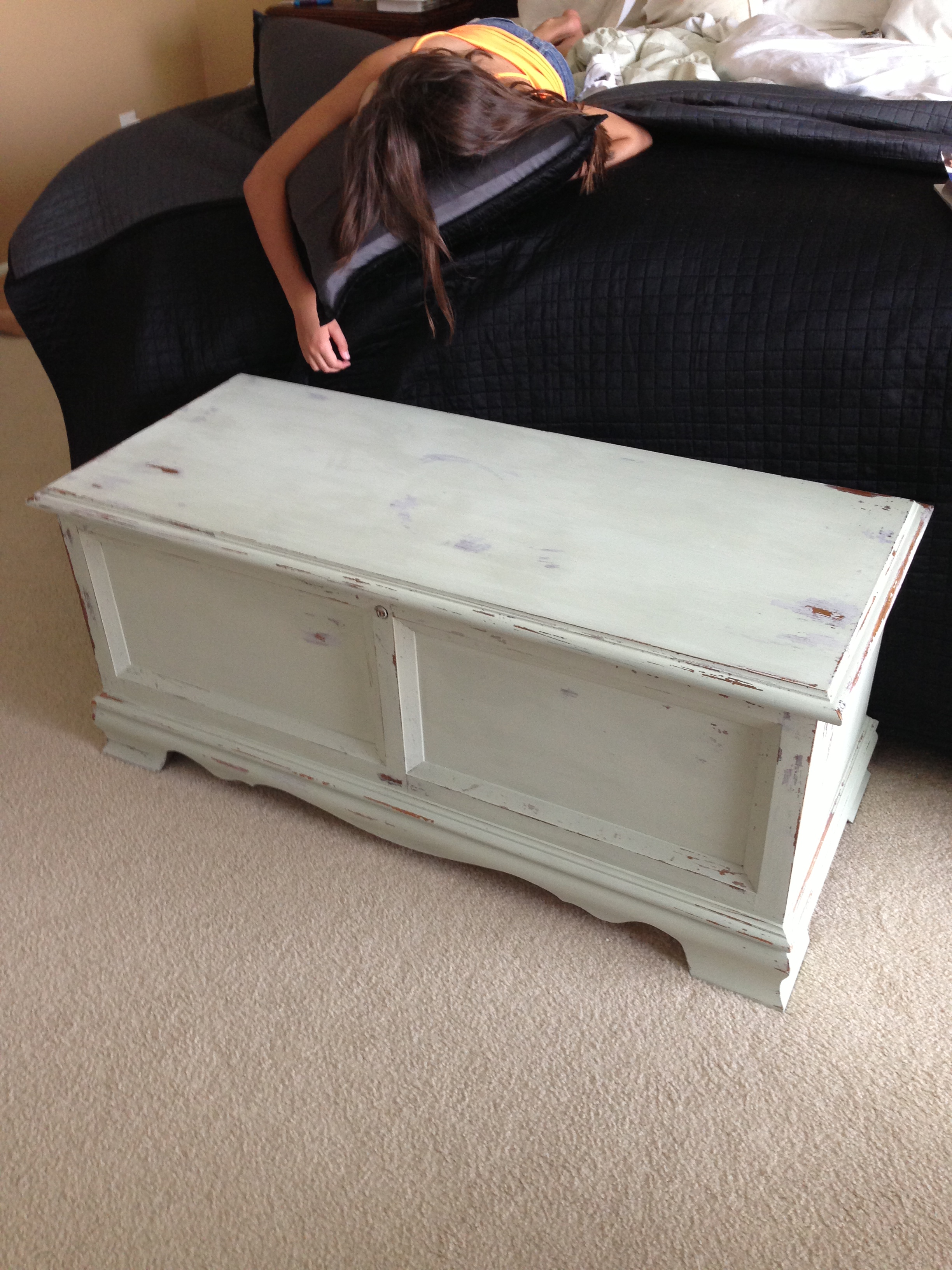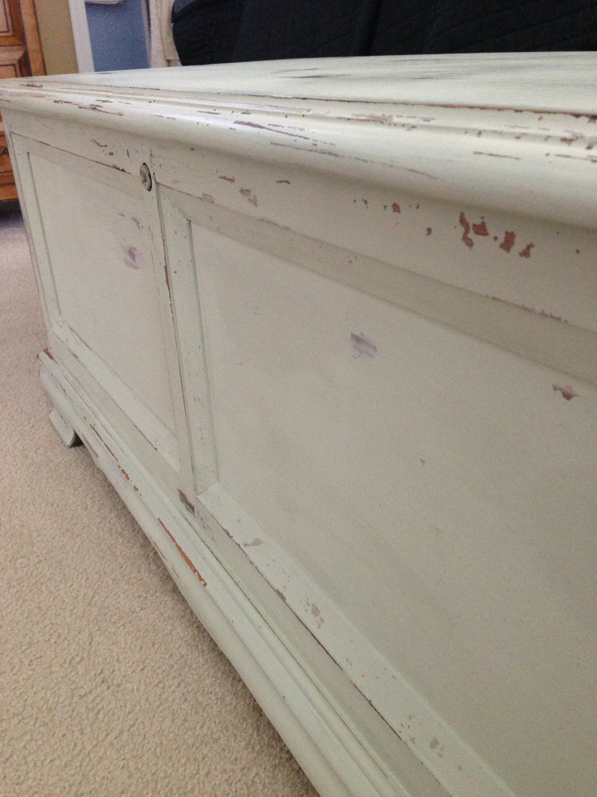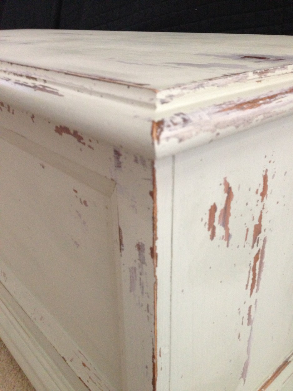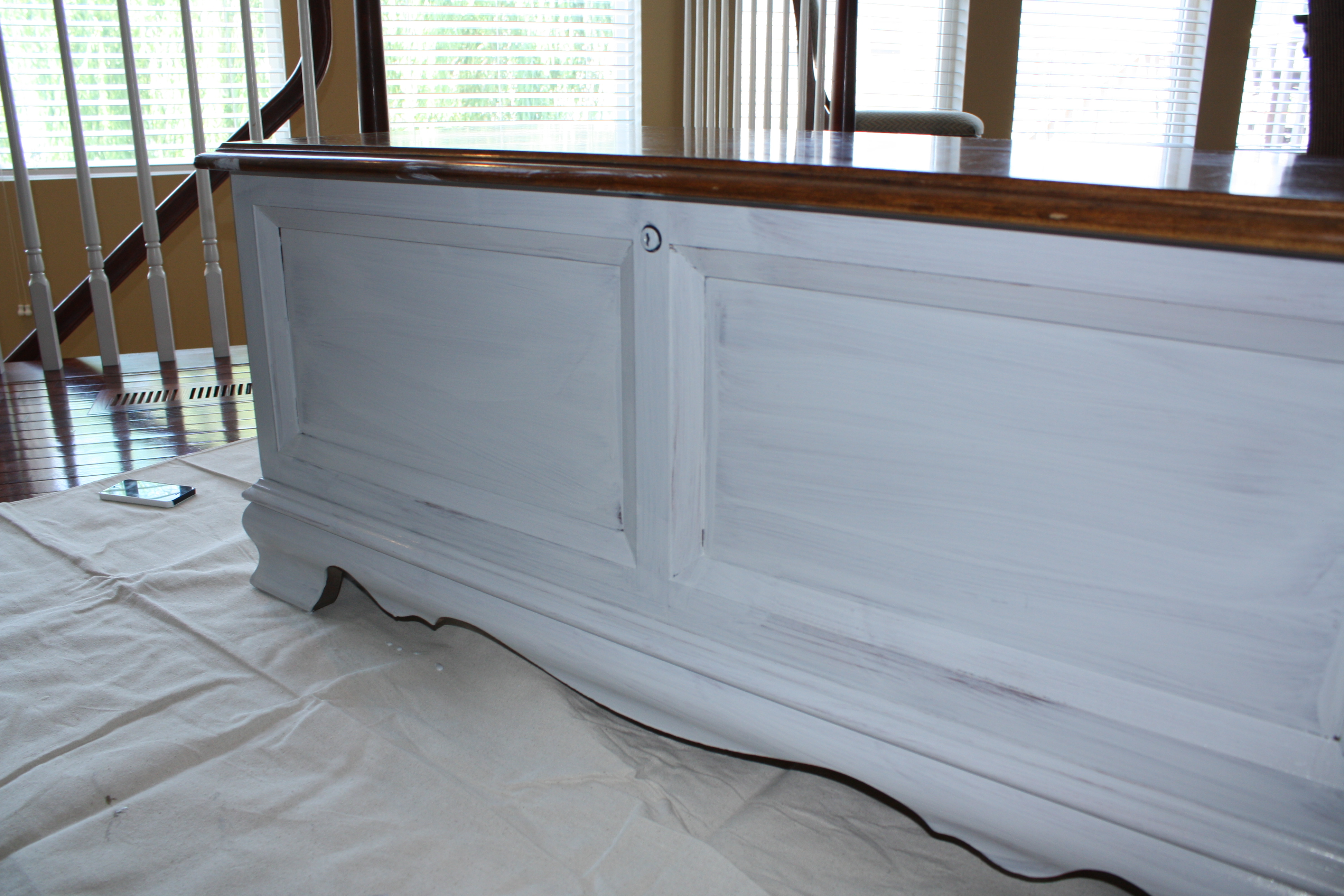 I lightly distressed the white part of both pieces using a fine grit sandpaper. I waxed both pieces using a clear wax.